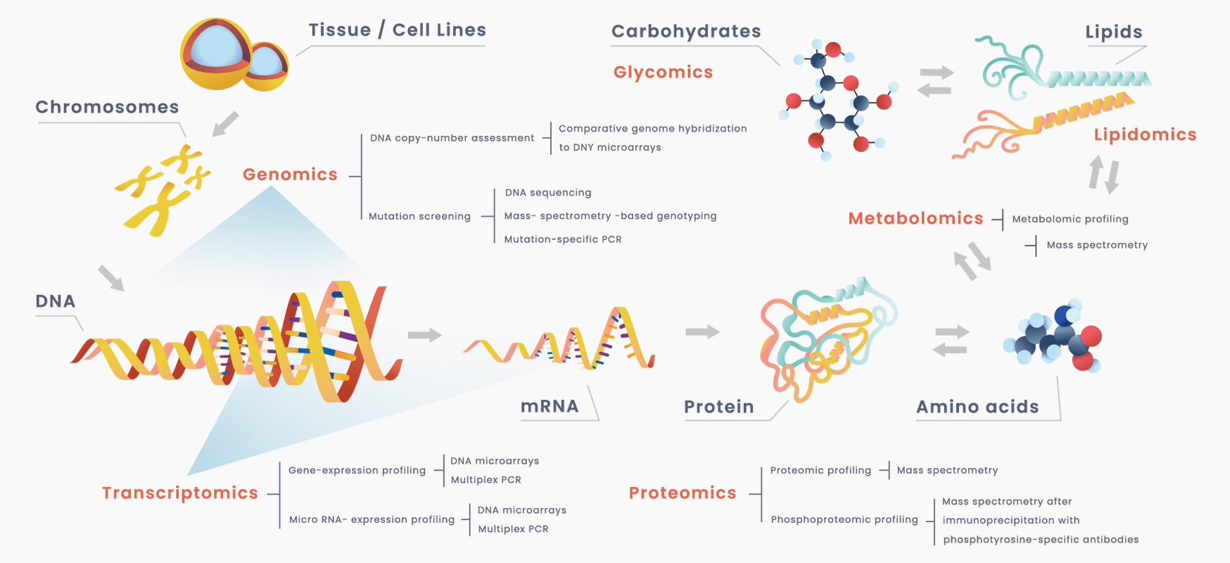 Die individuelle Gesundheit hängt von mehreren Ebenen der Realisierung der genetischen Information in verschiedenen Zellen und Geweben des menschlichen Organismus ab. Verschiedene Omics Technologien ermöglichen es, das vollständige molekulare Profil der Zellen des menschlichen Körpers auf verschiedenen Ebenen zu erhalten.